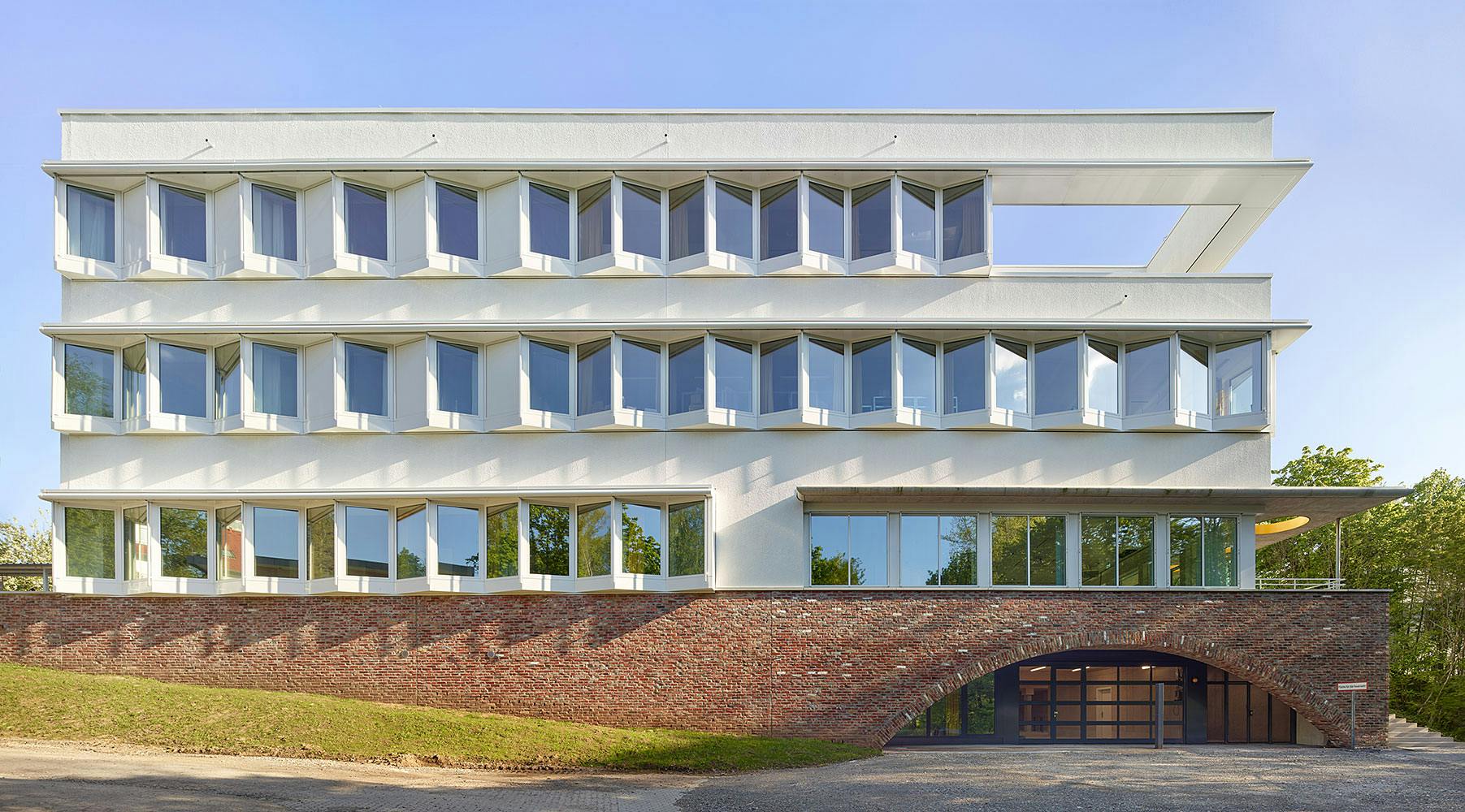 Enger Anwohnerkontext, sensible Natur und höchste technische Anforderungen an Schallschutz, Raumakustik und Medieninfrastruktur geprägt von einem anspruchsvollen Genehmigungs- und Bauprozess mit komplexen ökologischen Vorgaben. Daraus ergab sich, dass Fassade und Fenster höchste Schallschutzwerte zu erfüllen hatten und wir für den Studio- und Sendebetrieb zusätzlich Spezialtechniken integrieren mussten.