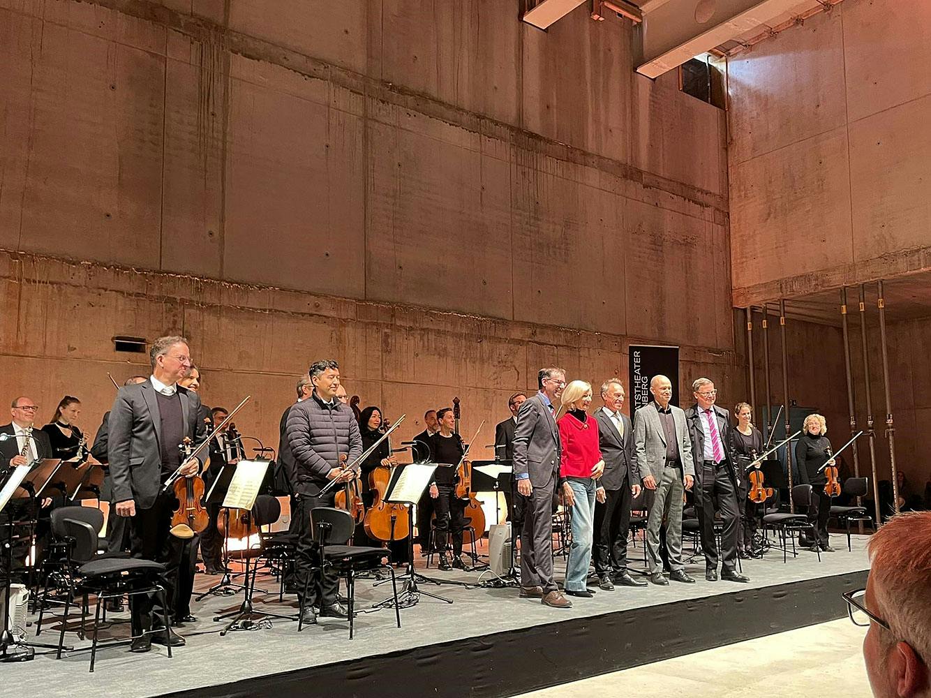Der Rohbau des neuen Orchesterprobensaales nahm erstmals akustische Gestalt in Form eines Klangraumes an: Mitglieder der Staatsphilharmonie Nürnberg sowie Sängerinnen und Sänger des Opernensembles präsentierten unter der Leitung von Generalmusikdirektor Roland Böer musikalische Auszüge aus „Die Hochzeit des Figaro“, Wolfgang Amadeus Mozart.